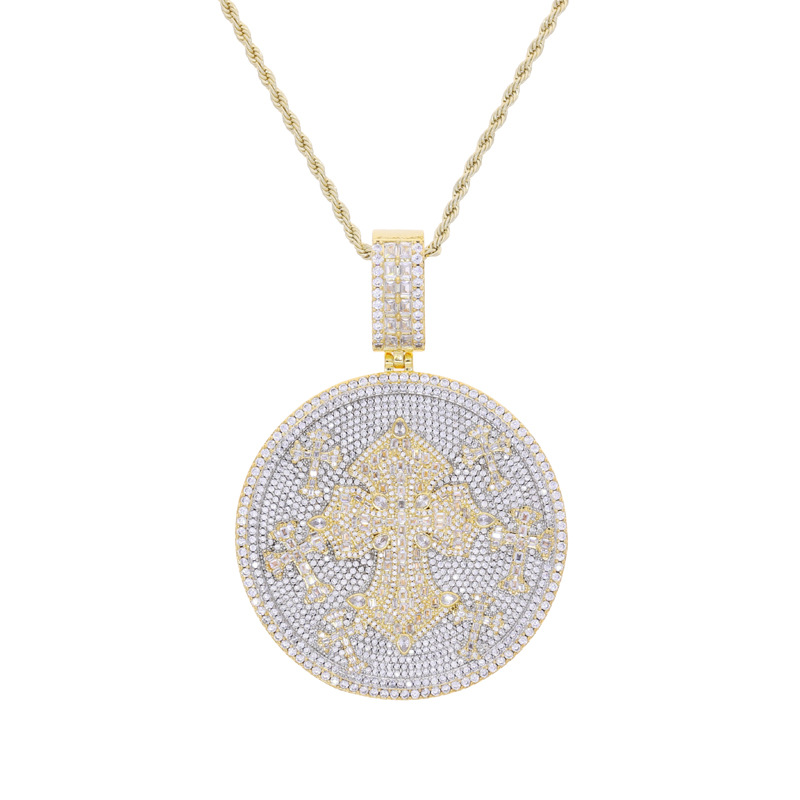 Vein Dynasty® Full Diamond Disc Pendant in 18K Gold-Plated Pure Copper with Cubic Zirconia