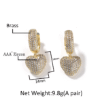 Vein Dynasty® Full Diamond Love Earring in 18K Gold-Plated Pure Copper and Cubic Zirconia