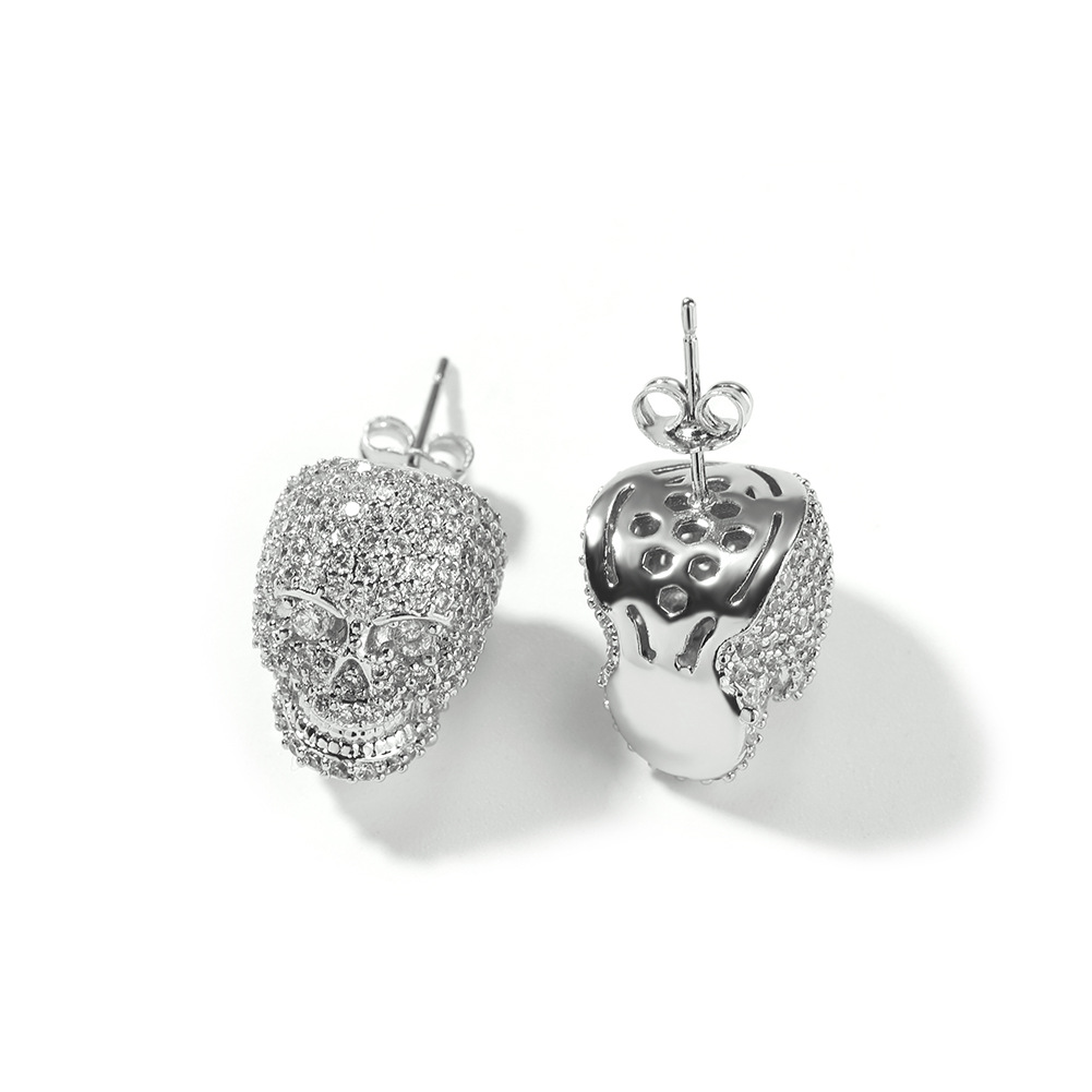 Vein Dynasty® Skull Earring in 18K Gold-Plated Pure Copper and Cubic Zirconia