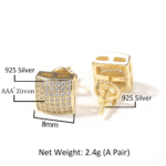 Vein Dynasty® Curved Square Earring in 18K Gold-Plated Pure Copper and Cubic Zirconia