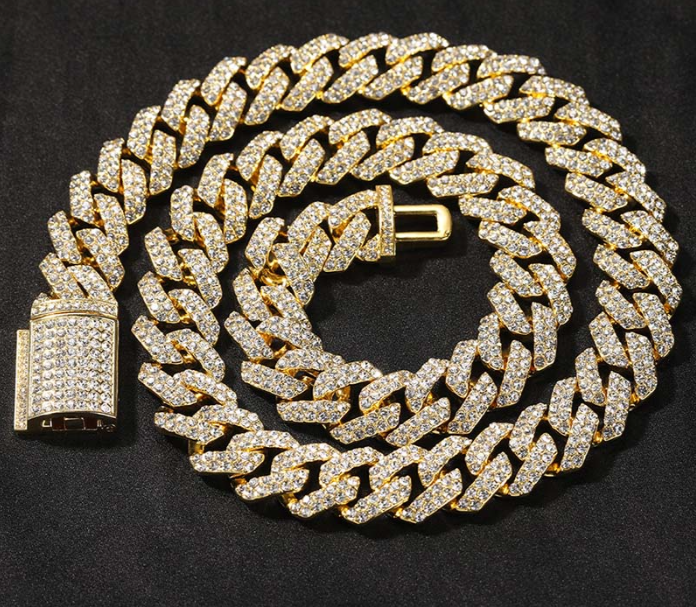 Vein Dynasty® 18mm Cuban Link Chain in 18K Gold-Plated Alloy with Crystal